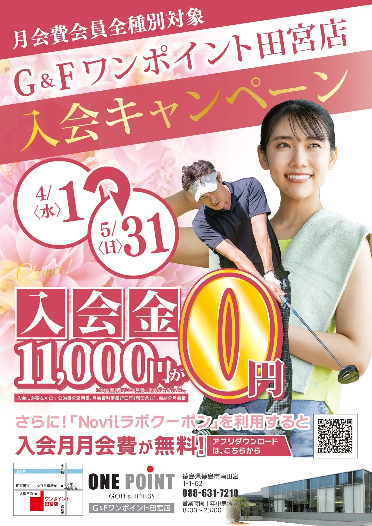 月会費会員全種別対象 G&Fワンポイント田宮店 入会キャンペーン